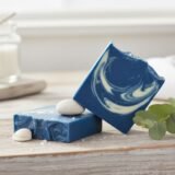Invigorating blue marble soap, scented with Eucalyptus and Cedarwood, offering a rich lather and deep skin hydration.