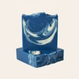 A handcrafted cold-process soap featuring a mesmerizing swirl of deep blue and creamy white, mimicking natural marble. Infused with Eucalyptus and Cedarwood essential oils, this bar offers an invigorating and grounding shower experience. The rich blend of Shea Butter and Coconut Oil ensures a luxurious lather and deep moisturization.